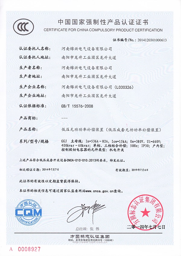 GGD低壓配電柜認(rèn)證******